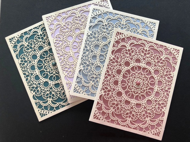 One of the reasons that there are so many beautiful dies in Stampin' Up's product line is to eliminate the need to fussy cut. Fussy cut? Yes, you know ~ cutting carefully all the details of an image with sharp little scissors or SNIPS. I understand that some of you are actually allergic to fussy cutting. Therefore, dies. And, laser-cut paper. We do have 12" x 12" Shimmer Detailed Laser-cut Paper on page 169 and featured on this blog on March 9 and 10 by MELISSA BURROUGH'S CARDS.